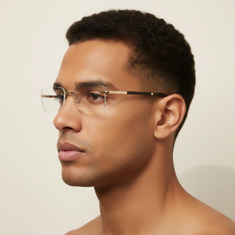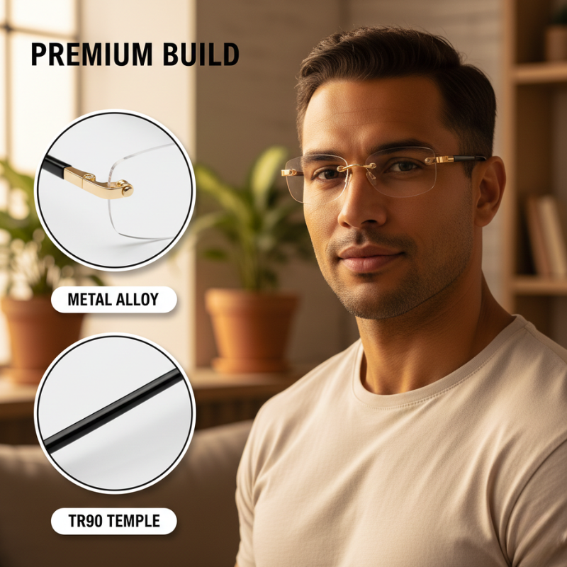 ✔ LOOK SHARP, NOT LIKE YOU LIVE BEHIND A SCREEN - The rimless cut-edge design with polished metal temples gives you a clean, sophisticated silhouette that looks like designer eyewear — not chunky "gamer glasses" that announce your screen habits to the world.