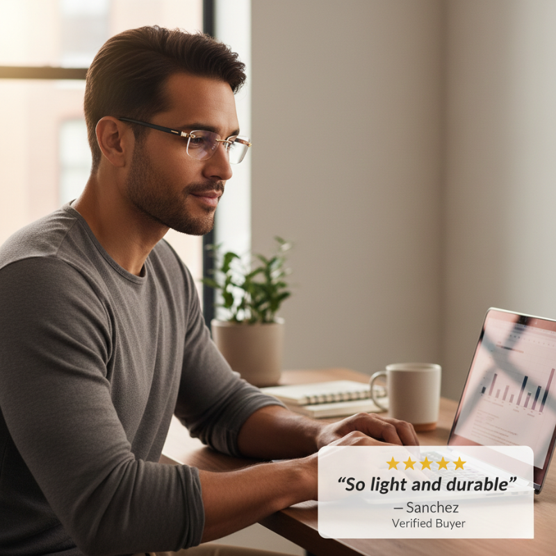 ✔ WEAR THEM ALL DAY WITHOUT FEELING A THING - Solid metal hinges paired with ultra-light TR90 temples and adjustable silicone nose pads distribute weight so evenly that Lucent™ virtually disappears on your face — even after 8+ hours of wear.