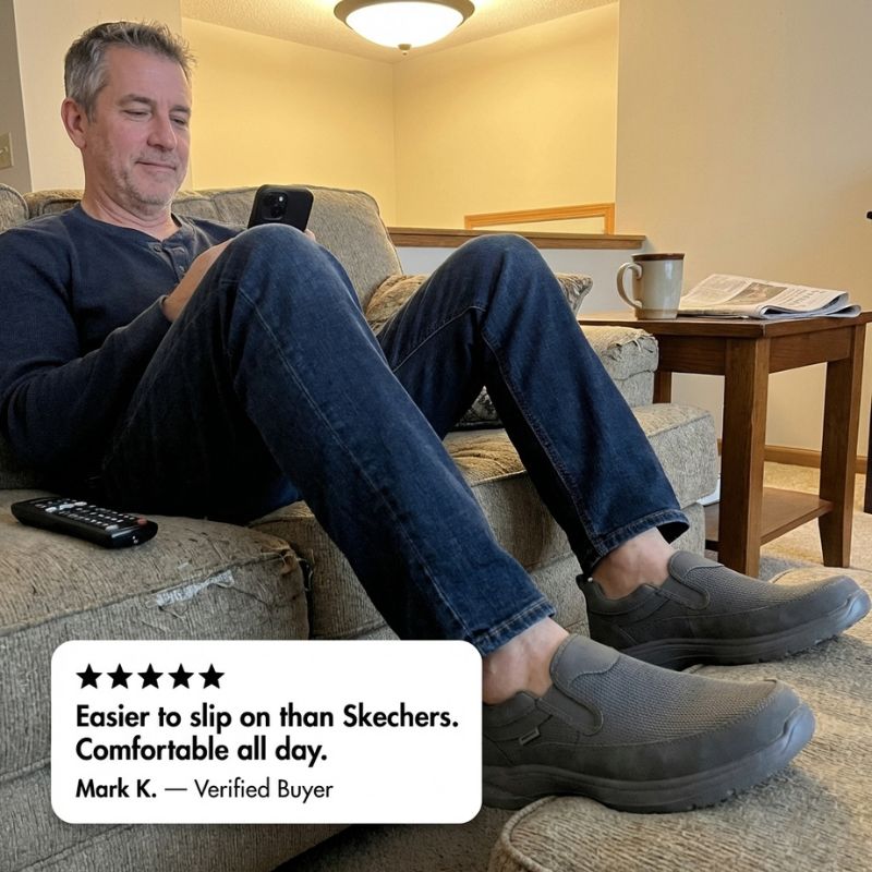 ✔ DONE FIGHTING WITH LACES EVERY MORNING - Easton™ slips on in seconds — no bending, no laces, no hassle. The elastic sides flex open wide and snap back to hold your foot snug. Faster than any tied shoe. Easier than any laced boot.