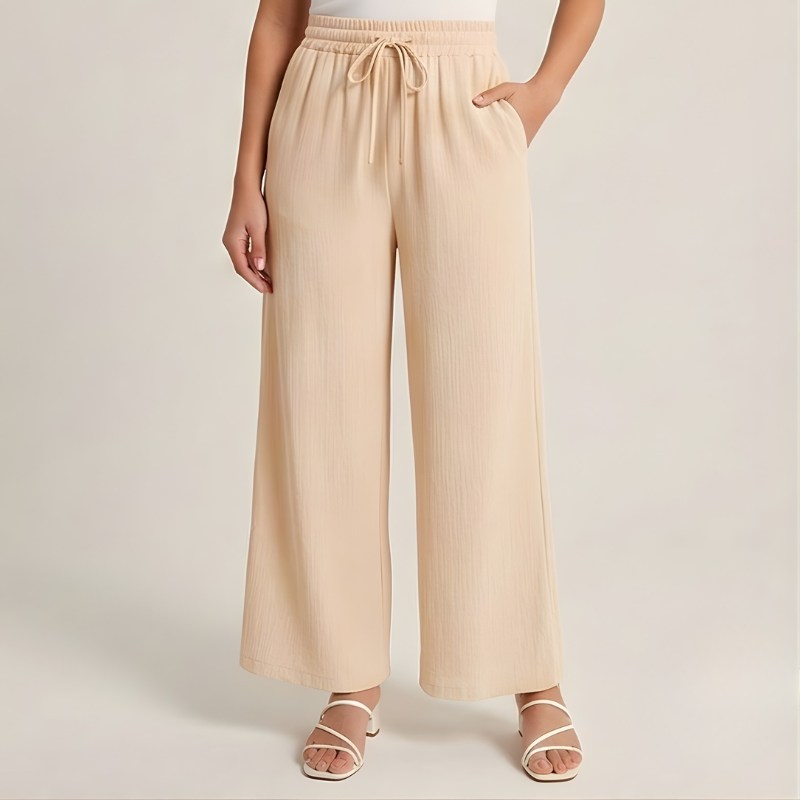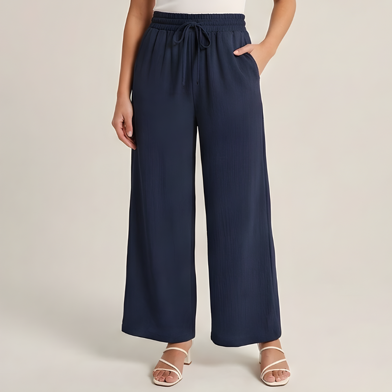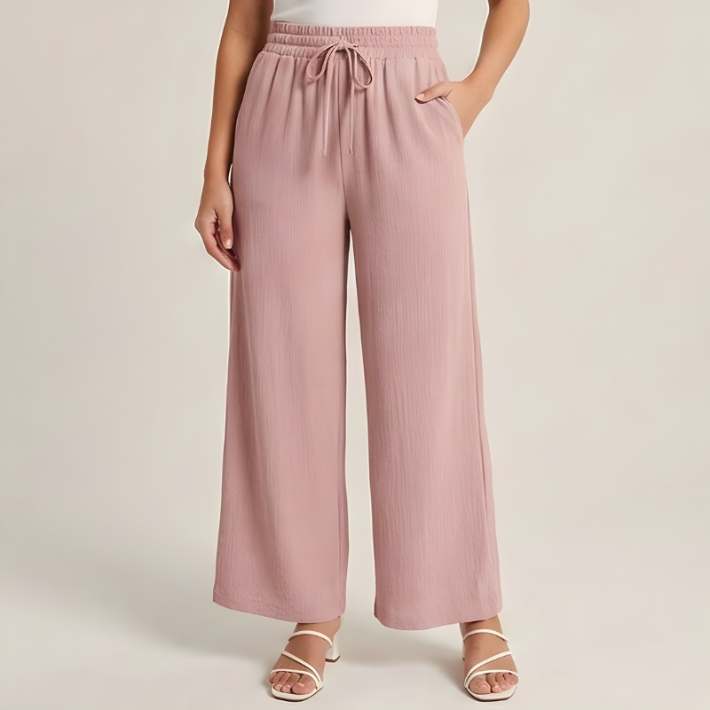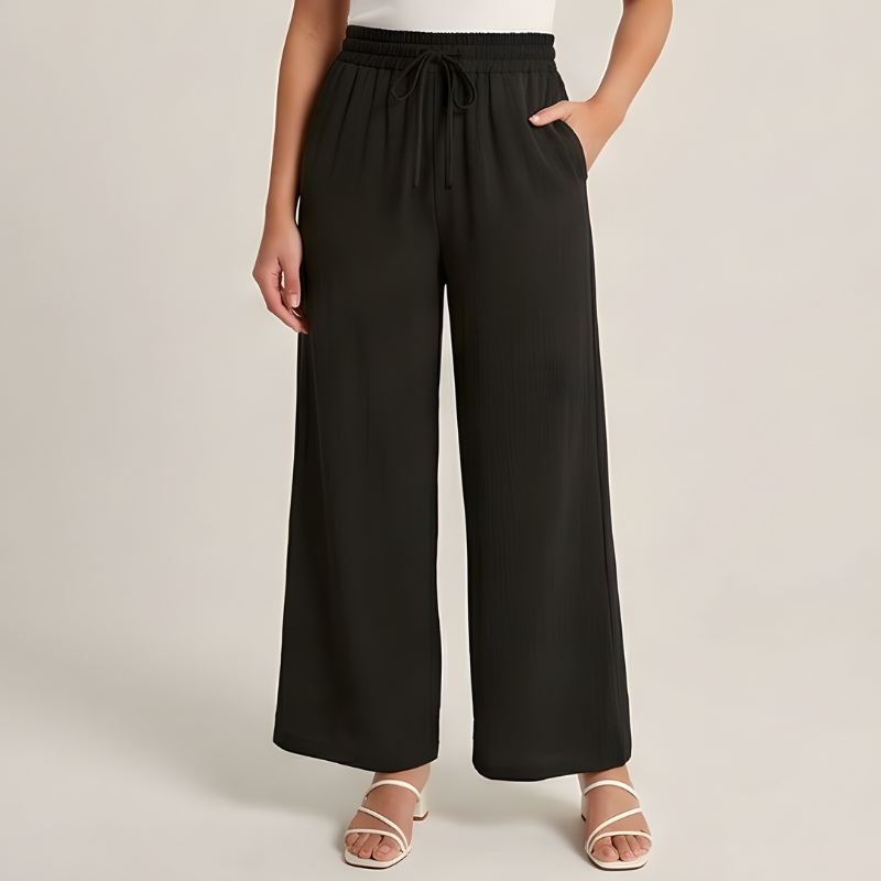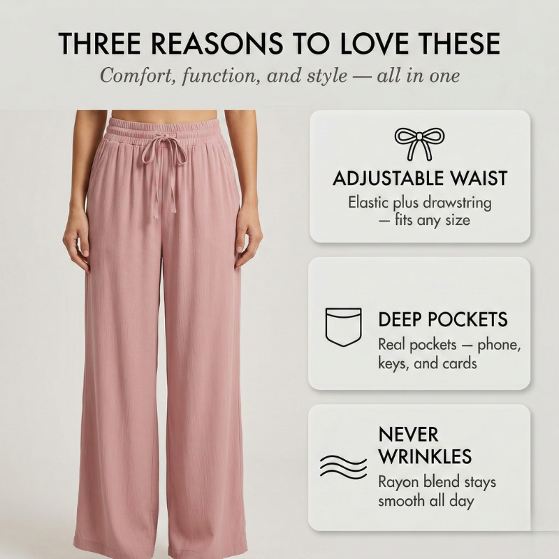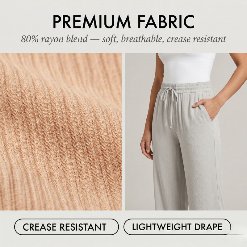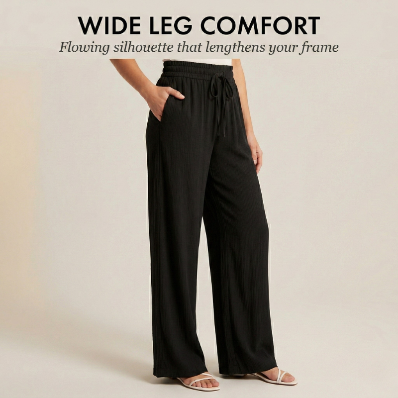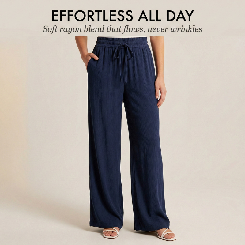 The wide-leg silhouette lengthens your frame, the adjustable drawstring waist fits your body precisely, and the fabric stays effortlessly smooth — so you look like you planned this outfit, even when you didn't.