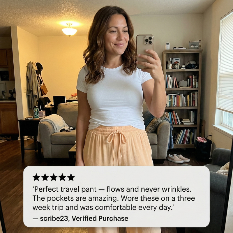 No tugging. No adjusting. No "I need to change before I go out." Just fabric that flows with you — through coffee, errands, dinner, and everything in between.