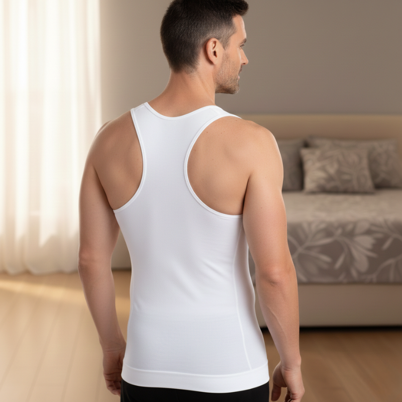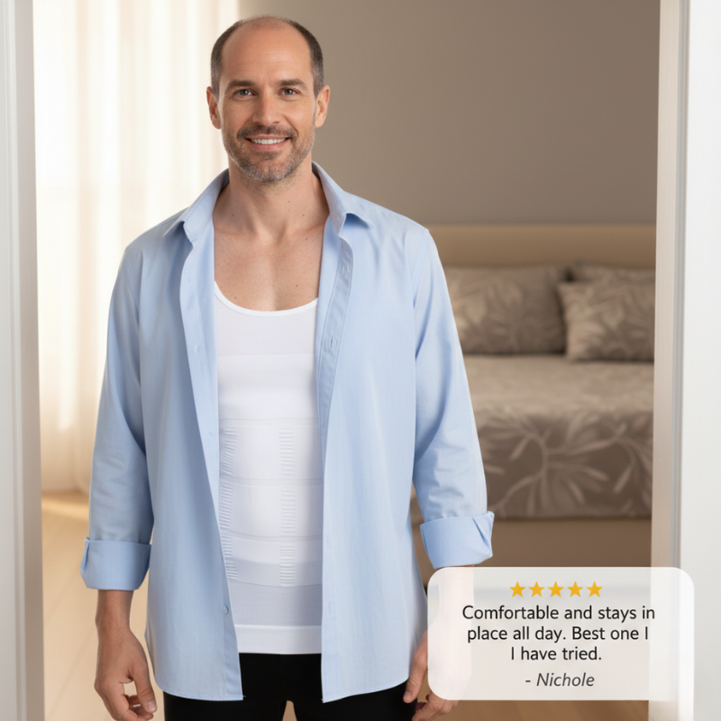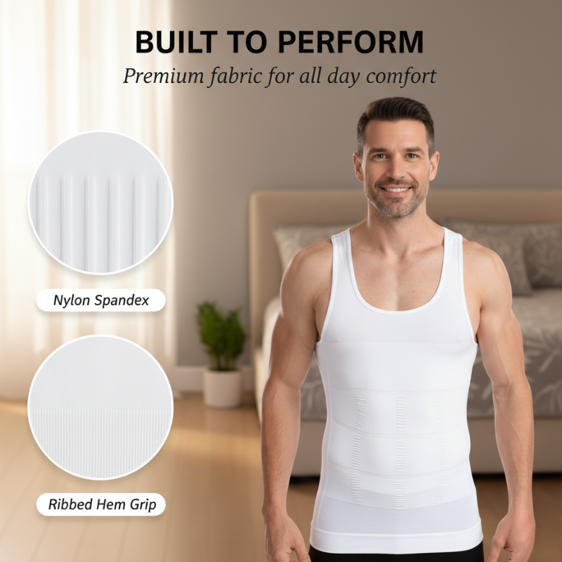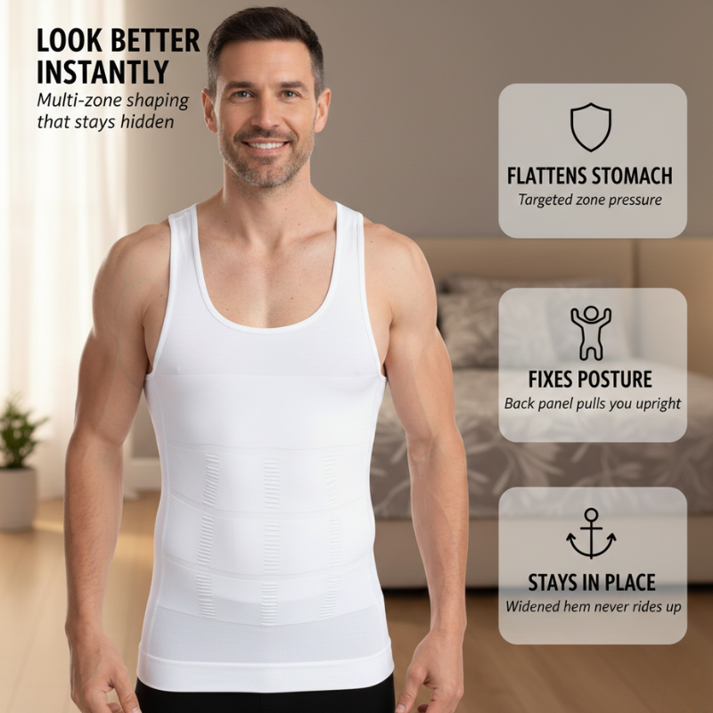 The belly. The chest. The love handles pressing through the fabric. You've probably tried a compression shirt before. Maybe two or three. And they either squeezed you like a sausage casing or did absolutely nothing — just a tight undershirt that made you sweat.