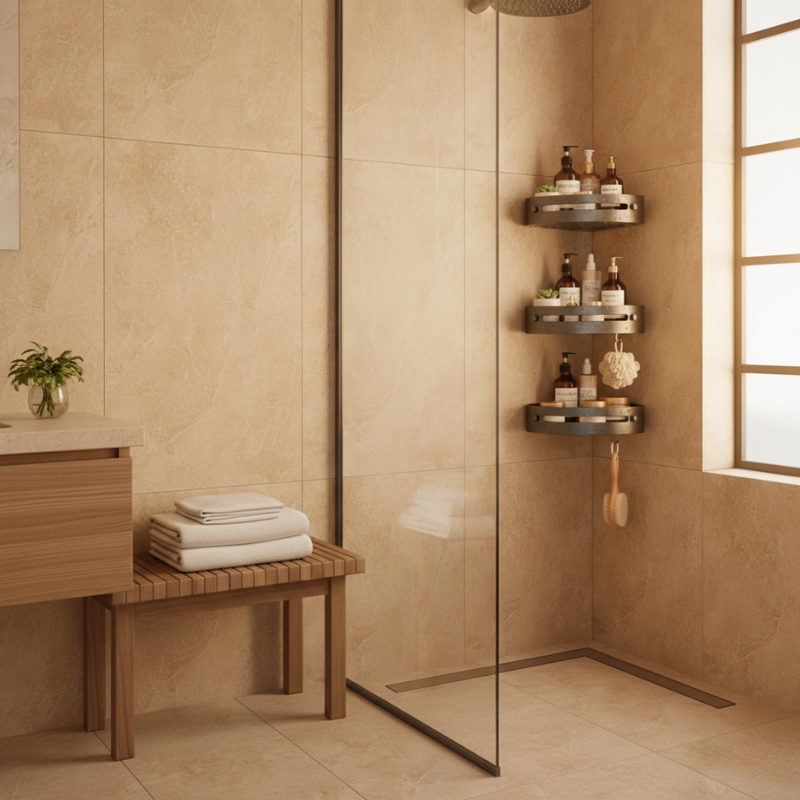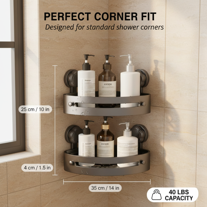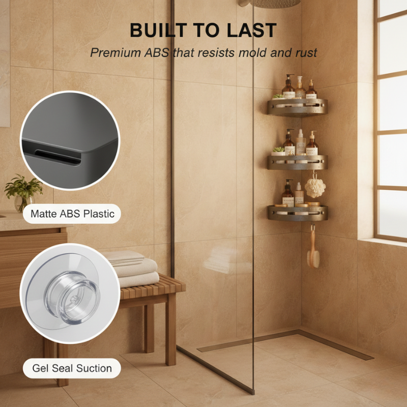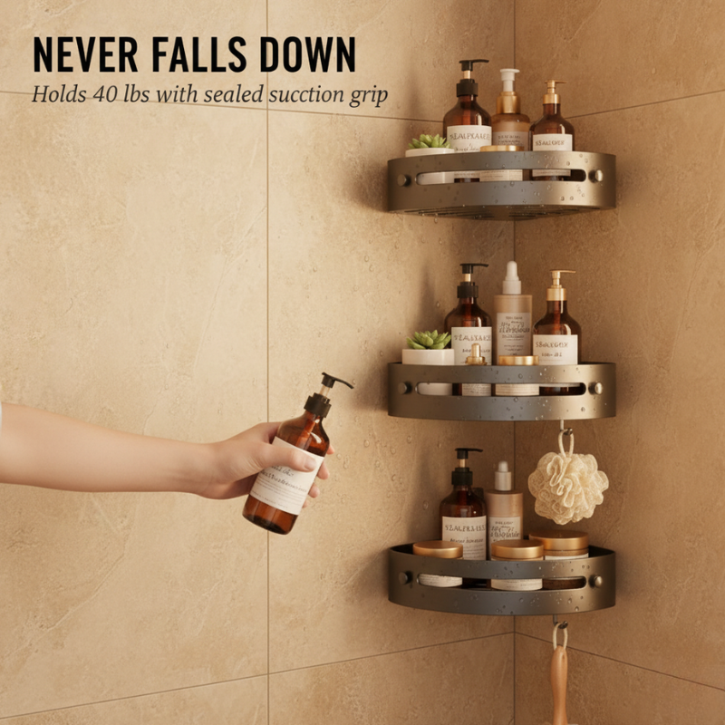 This is the only corner shower caddy you'll mount once and never think about again. The triangular ABS shelving tucks into your shower's unused corner space, holds up to 40 lbs without flexing or sagging, and keeps every bottle, razor, and loofah organized and draining — so your shower finally looks as clean as the rest of your bathroom.