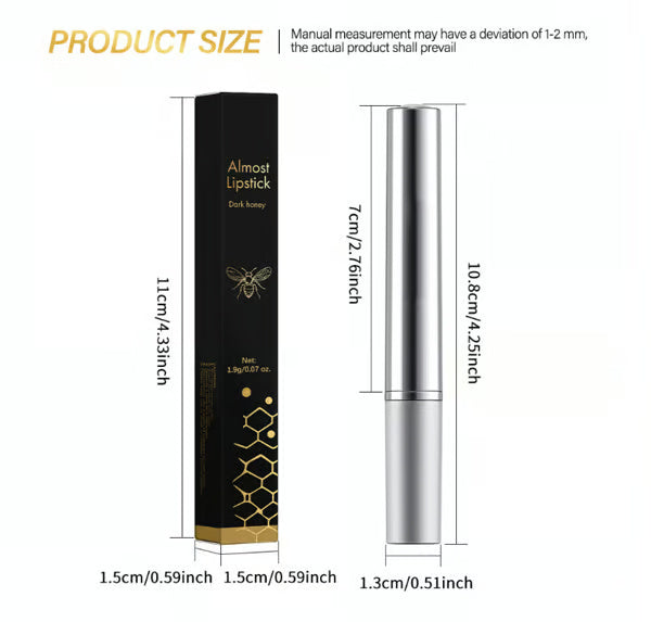 HoneyKiss Lipstick is more than just a lipstick - it's a celebration of your natural beauty. Our shade-adapting formula enhances your unique lip tone, providing a sheer, luminous finish that's perfect for any occasion. Experience the confidence that comes with healthy, beautiful lips.