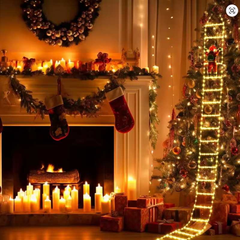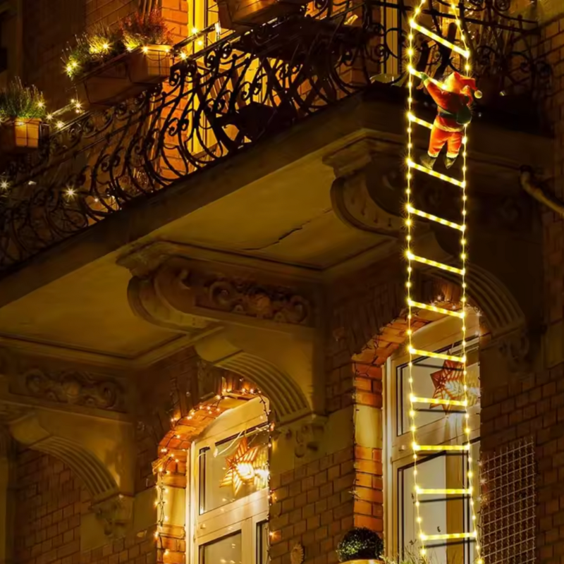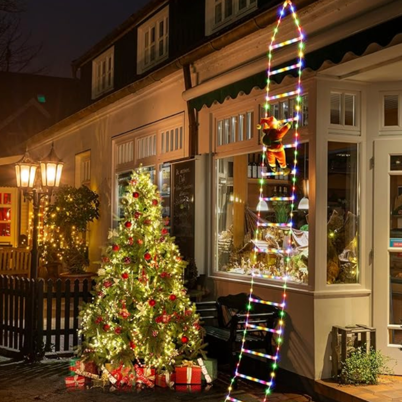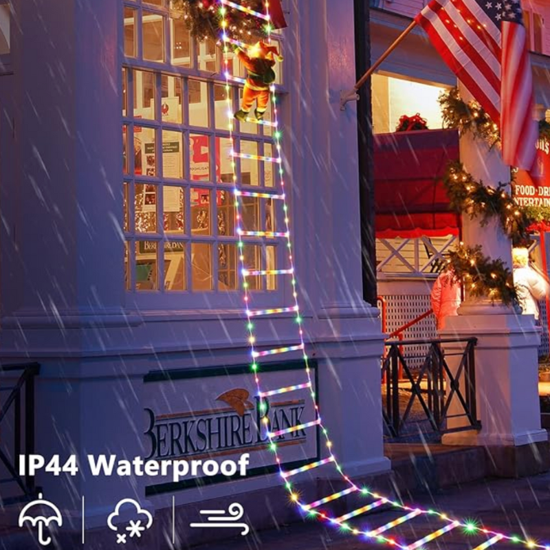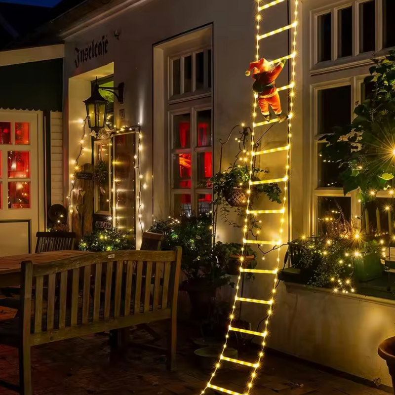✔ CREATE A "WOW" MOMENT INSTEAD OF JUST HANGING LIGHTS - The secret is the charming climbing Santa figure that perpetually makes his journey up the glowing ladder, creating a captivating, animated scene that draws the eye and sparks the imagination far more than any static decoration ever could.