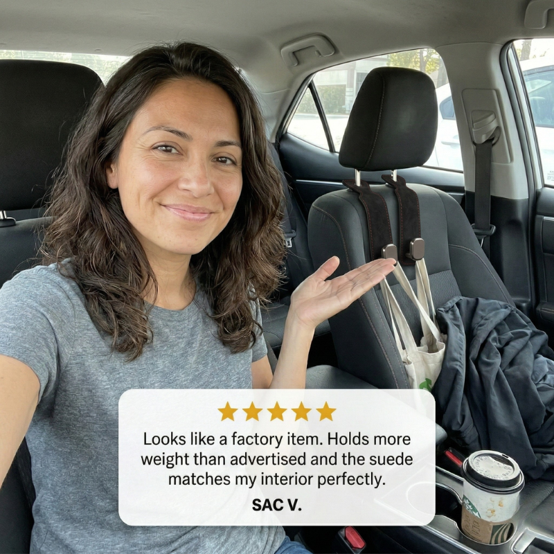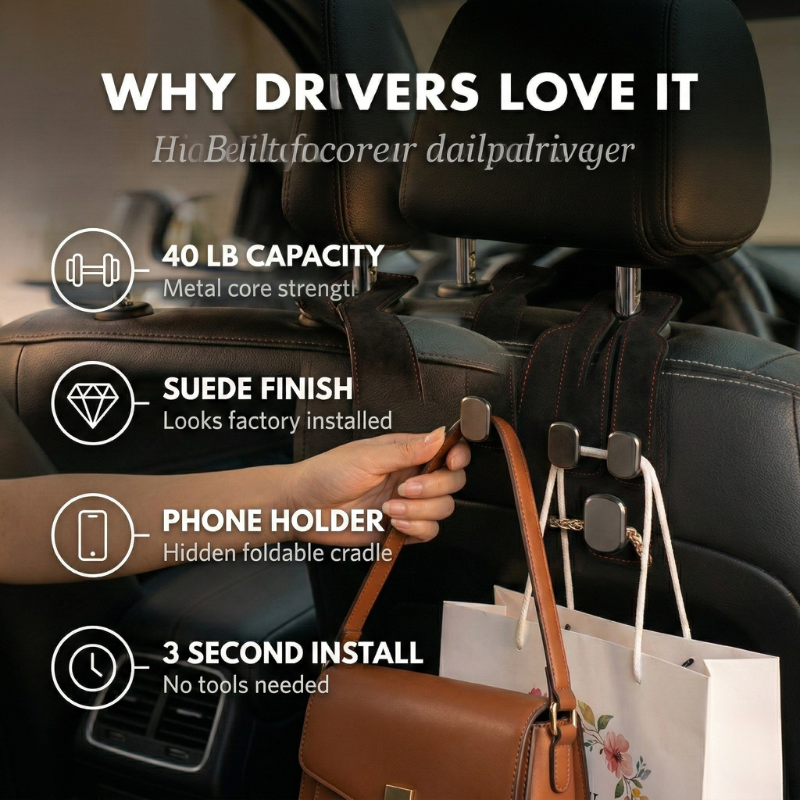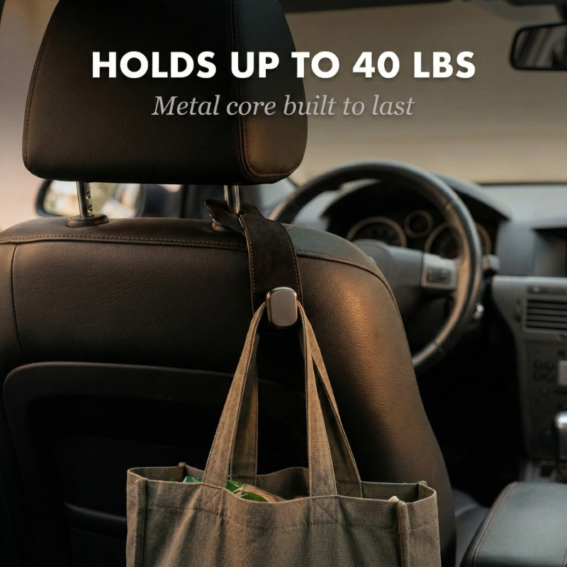 You've probably seen those cheap plastic headrest hooks before. They crack, they rattle, and they look like they belong in a rental car — not yours.