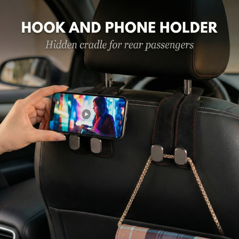 Stovex™ – Alcantara Suede Dual Hook & Phone Holder for Car Headrest + 50% OFF