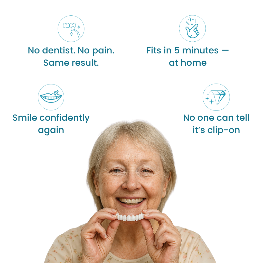 You want a perfect, confident smile at home without the hassle of traditional dental procedures. You're frustrated with the painful, expensive dentist visits required to fix common smile insecurities. You need a fast, reliable solution that allows you to get a better smile in 5 minutes.