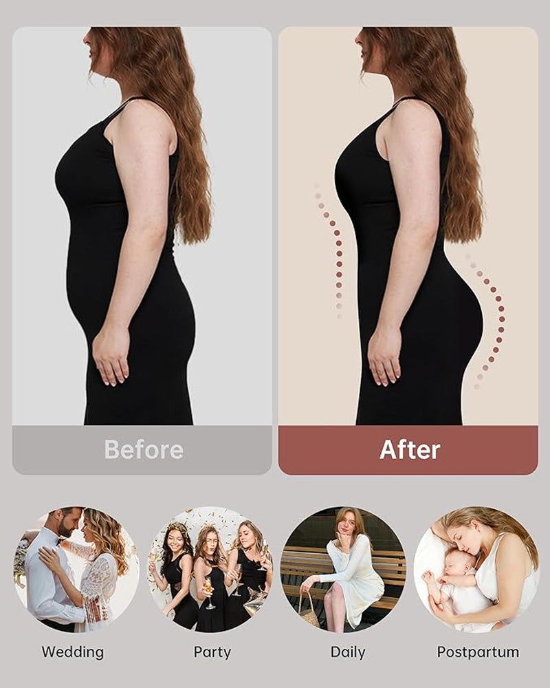 ✔ A SMOOTH, FLAT TUMMY The high-waisted design uses a targeted compression panel that is specifically designed to smooth and flatten your lower abdomen, creating a sleek, toned look without any uncomfortable pressure on your ribs.